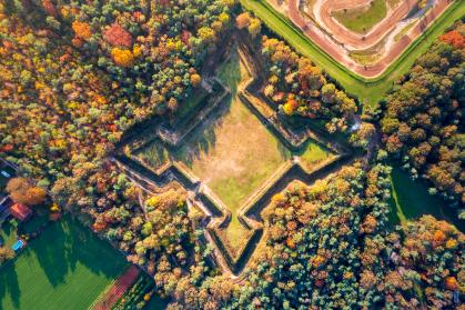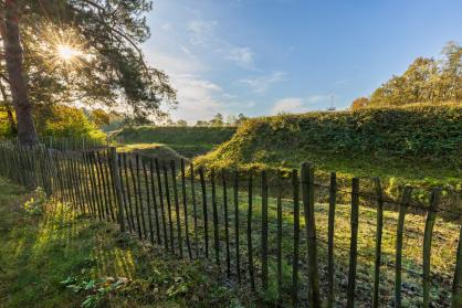 Historisch verdedigingswerk uit de Tachtigjarige Oorlog, verscholen in het groen.